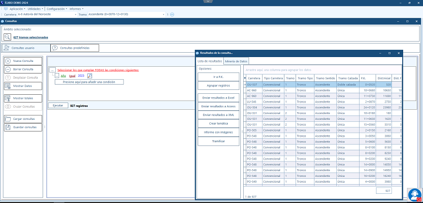 ICARO allows representing any consultation in mapping thematics, obtaining a visualization that facilitates the interpretation of the results located on the map of the network.